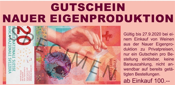 Wir sagen Danke an alle unsere Kunden für Ihre Treue während der Corona Krise. Danke auch für die Geduld unserer Vinothekbesucher während der vielen Monate des Strassenbauprojektes vor unserer Vinothek. Aus diesem Grunde erhalten Sie untenstehenden Gutschein.