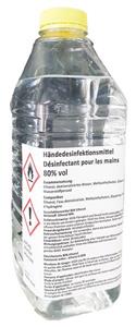 Händedesinfektionsmittel 80% vol gebrauchsfertig, nicht geschmacksneutral WHO-Rezeptur, in 2 Liter PET Gefahrenhinweis: leicht entzündbar