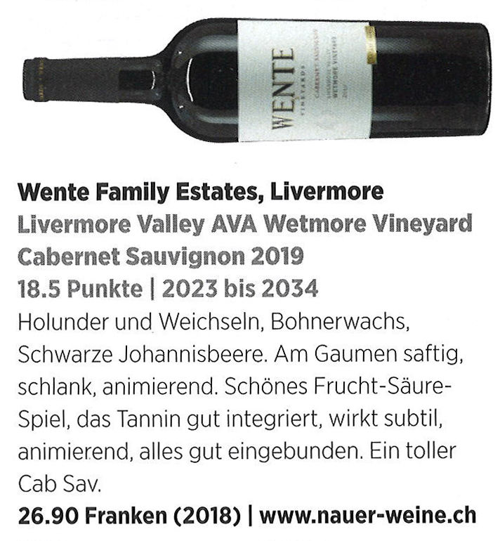 September, Vinum, Wetmore Cabernet bester Cabernet aus Kalifornien