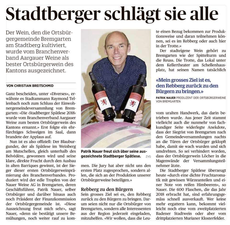 Juni 2019, Stadtberger Spätlese, Aargauer Zeitung