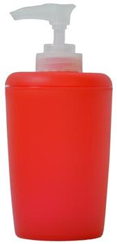 Seifenspender / Dispenser zu Desinfektionsmittel rot transparent 6.8 x 15.8 cm ohne Inhalt