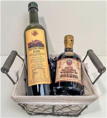 Aceto & Olio Italien: 1 Fl. 25cl Aceto Balsamico di Modena IGP 8 anni 6 Scudi, 1 Fl. 50cl Olio Extra Vergine d'Oliva Toscana IGP, schön verpackt in Geschenkkorb mit Cellophan